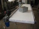 Для ООО "ПРЕСТИЖ - АНДРЕЕВСКИЙ ФЛАГ" изготовлен ленточный Z-образный конвейер для подачи готовой смеси из-под смесителя в полость пресс-формы. Смесь представляет собой массу природного материала вермикулита с жидким натриевым стеклом. Нагрузка ~ 2-3 кг на пог.метр. Для решения данной задачи был изготовлен Z-образный наклонный конвейер длиной 4400мм с ПВХ лентой марки Kazan общего назначения толщиной 3,8 мм и шириной 600мм. Данная лента идеально подходит для транспортировки смеси и может работать в температурном диапазоне от -15 до +80ºС. Конвейер оснащен электрическим шкафом управления...